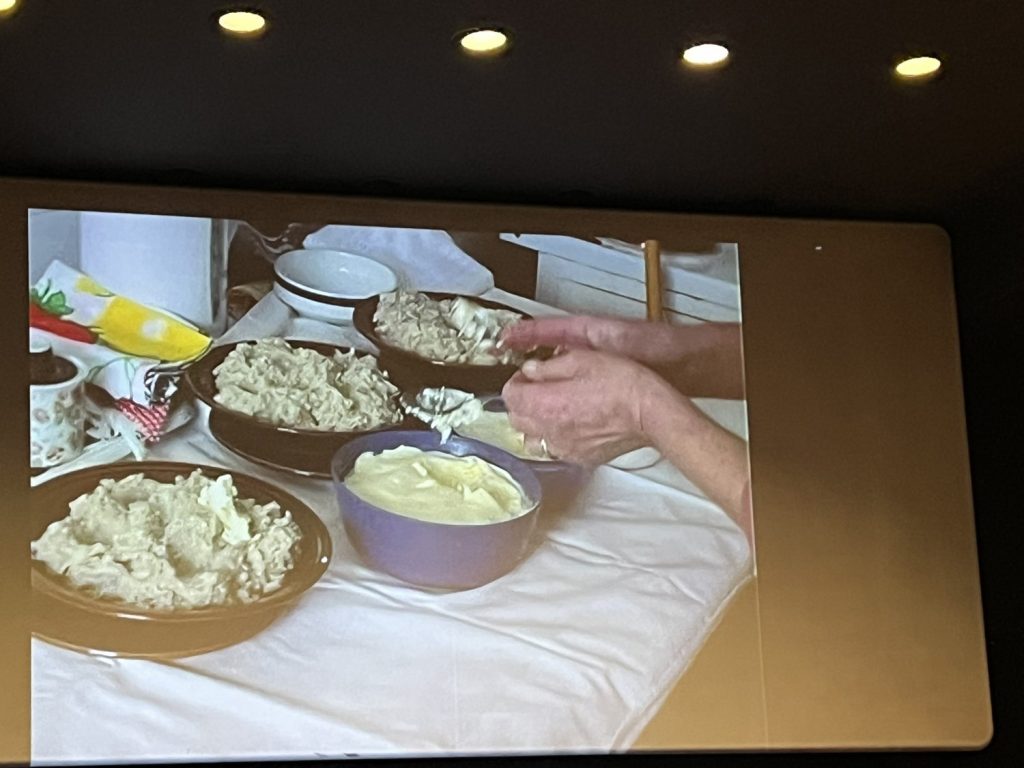 Nakon pauze za kafu, usledila su tri predavanja koja su se odnosila na prezentaciju određenih jela. Koleginica Snžana Tomić (Muzej na otvorenom Staro selo Sirogojno) pričala jeo tradicionalnom jelu – Ćeške. Ovo jelo koje se pravi od piletine i ječma, danas se sprema u jugozapadnom delu Srbije i važi za poseban specijalitet. Na osnovu rezultata istraživanja autora sprovedenih 2012. godine u Priboju, kroz dokumentarni film predstavljen je način njegove pripreme i ukazano je na značaj i aspekt njegove upotrebe.